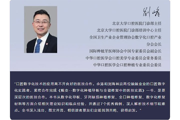 7月11日,由爱尔创支持的《蜕变-数字化种植导板与全瓷修复中的医技实践》书籍,在数字化口腔学术大会中隆重发布。