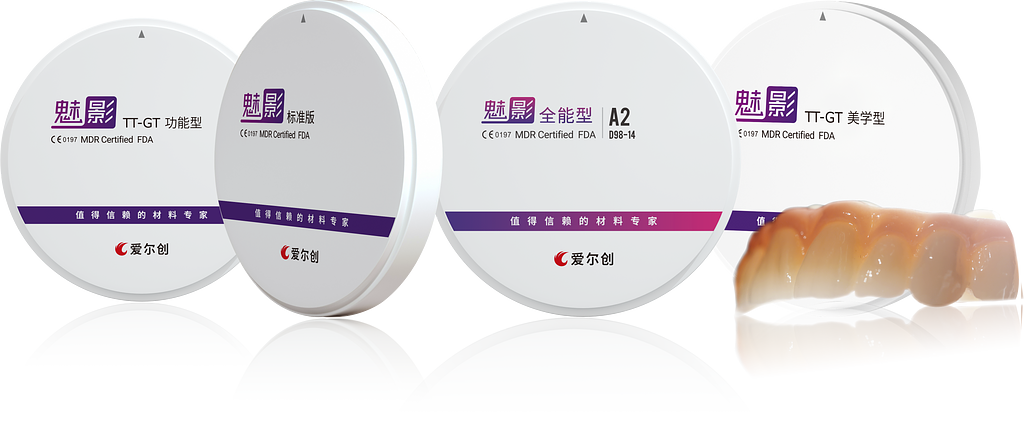 爱尔创·魅影氧化锆材料采用透性、强度、颜色等多维度渐变工艺,操作简单,兼顾功能和美学修复。